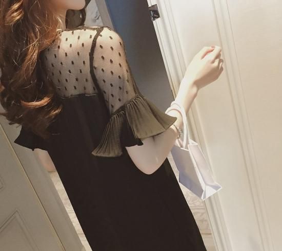 半袖で肩にかけて、透け感がありセクシーな雰囲気を醸し出しています。