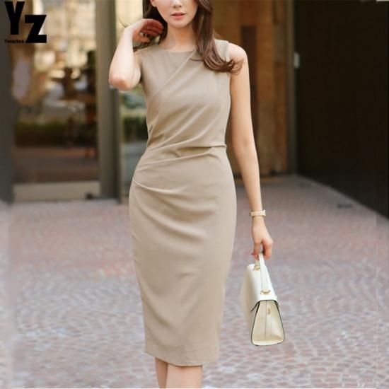タイトなボディラインが女性らしい印象のワンピースは、細見せノースリーブがスラっとしたスタイルに魅せてくれる一着。