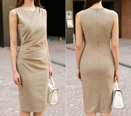 シンプルなワンカラーが大人フェミニンなタイトワンピース