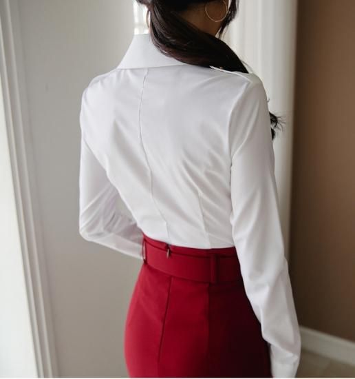 個性的でおしゃれな海外デザイン 上品セクシーなシャツトップスとタイトスカートのセットアップ