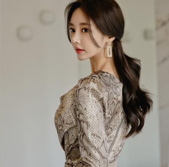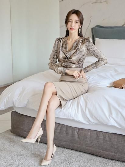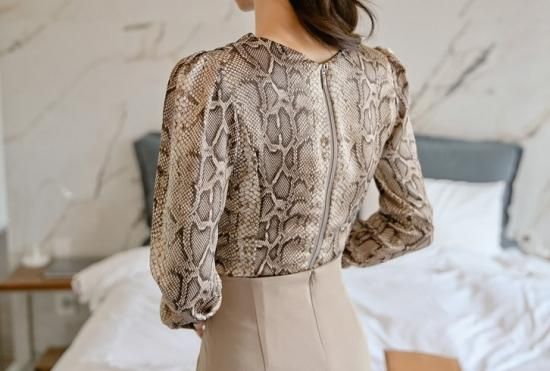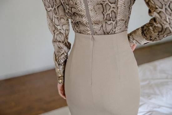 デートや同伴に エレガントなパイソン柄の長袖トップスとタイトスカートのセットアップ