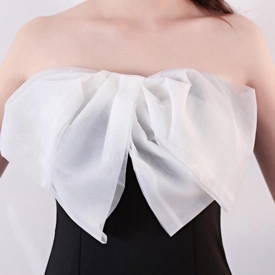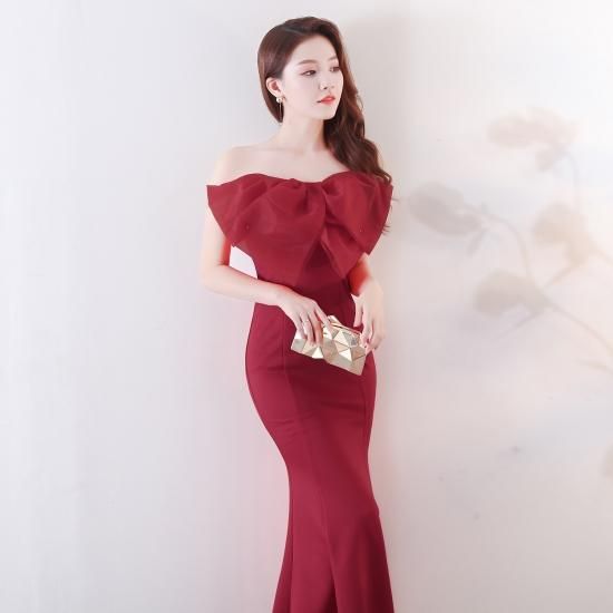 豊富な6色展開 ビックリボン風シフォンがおしゃれなマキシ丈ボディコンベアトップドレス