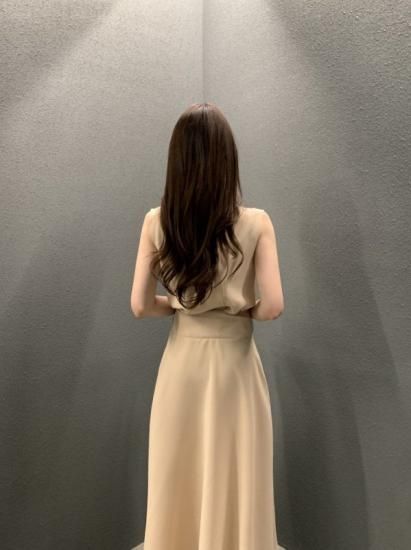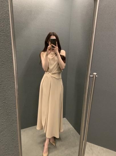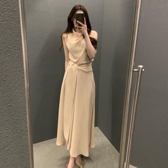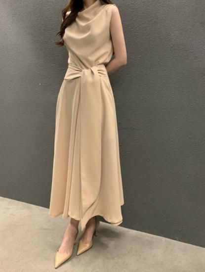 サイドアクセントのロング丈きれいめノースリーブワンピース カジュアルドレス 3color