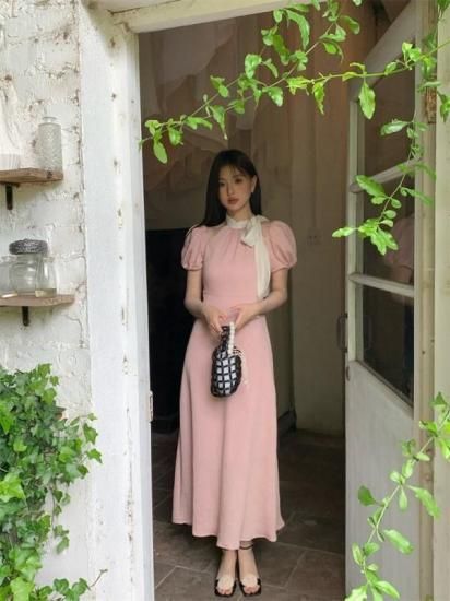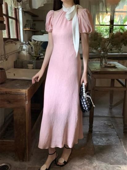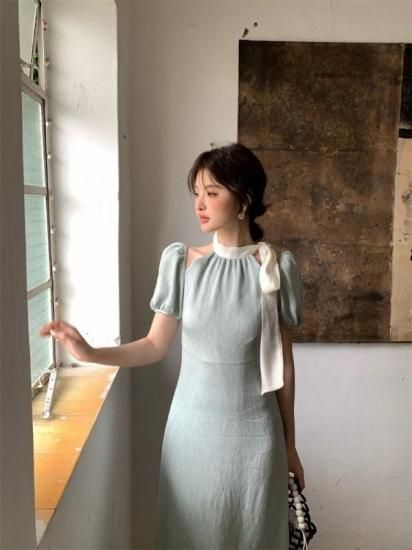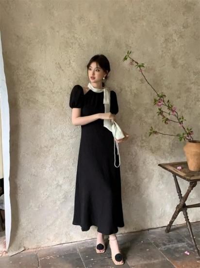 オープンショルダー ロング丈リボンワンピース タイトドレス 3color