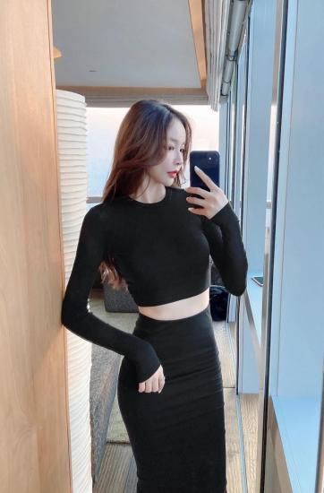 ショートトップスとミモレ丈スカートのボディコンセットアップ スナック 3色