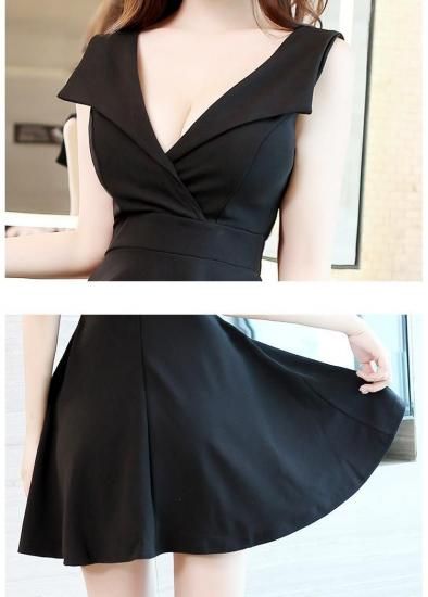 大胆セクシー 深Vカットのミニ丈ボディコンノースリーブワンピース 4色 キャバドレス