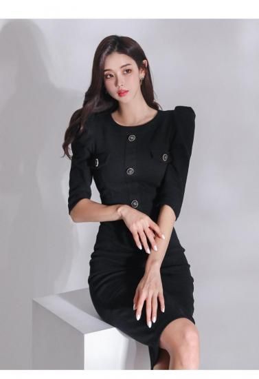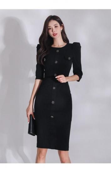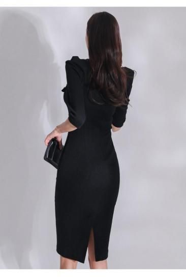バックスリットの膝丈ブラックタイトワンピース ラウンジ スナック 黒