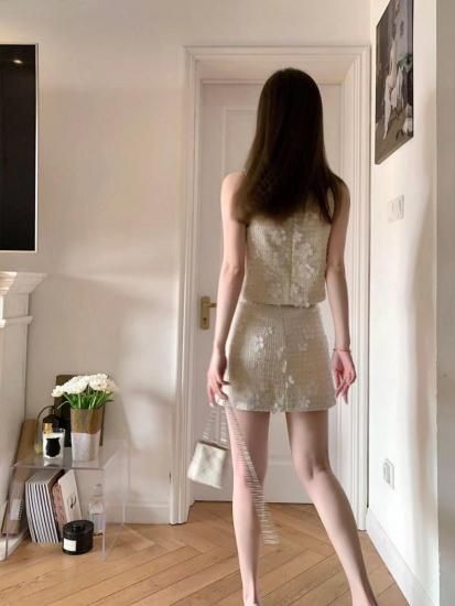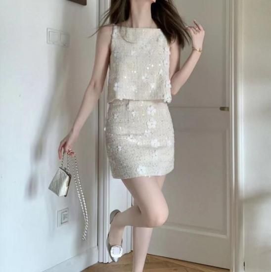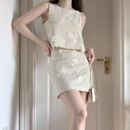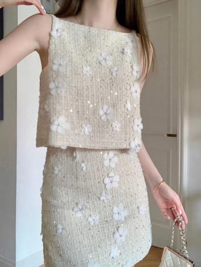 プチフラワーがかわいいノースリーブトップスとミニスカートのセットアップ