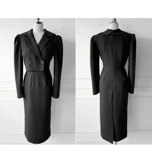 キャバスーツにもおすすめ トレンチ風膝丈ブラックタイトワンピース 黒