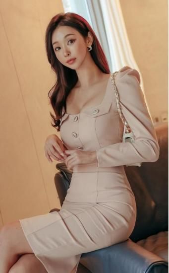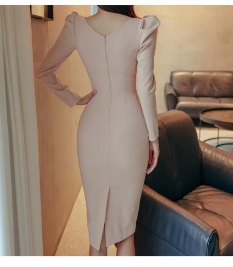 きれいめ&上品フェミニンな膝丈袖ありタイトワンピース ラウンジワンピ